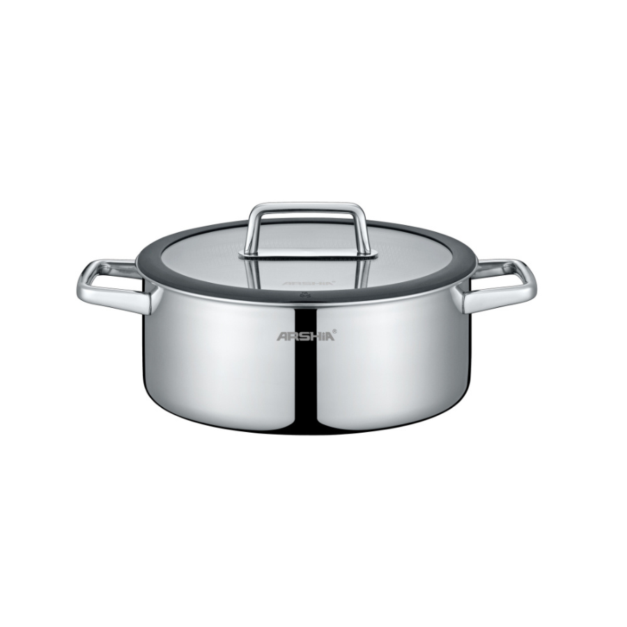ماهیتابه دو دسته استیل کف لیزری 28 سانتی عرشیا مدل SS050-3341 با طراحی سهلایه و ظرفیت 5.3 لیتر، انتخابی عالی برای هر آشپزخانه است.