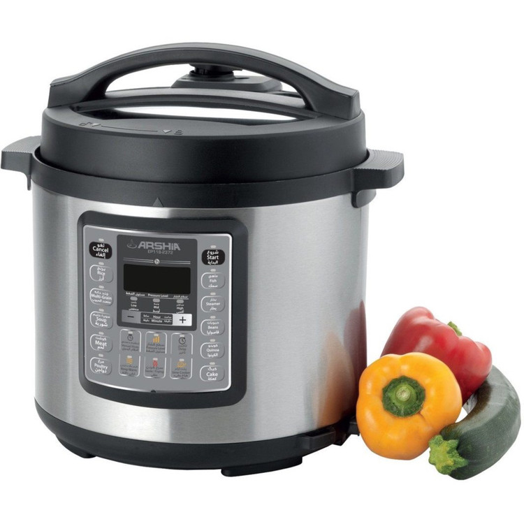 زودپز دیجیتال Arshia مدل EP118-2597 ترکیبی از سرعت، ایمنی و دقت است که تجربهای نوین از آشپزی سریع و سالم را برای شما به ارمغان میآورد. این دستگاه با داشتن دو قابلمه (یکی استیل و دیگری با روکش نچسب)، قابلیت پخت انواع غذاها از برنج و خورشت گرفته تا کیک و سوپ را دارد