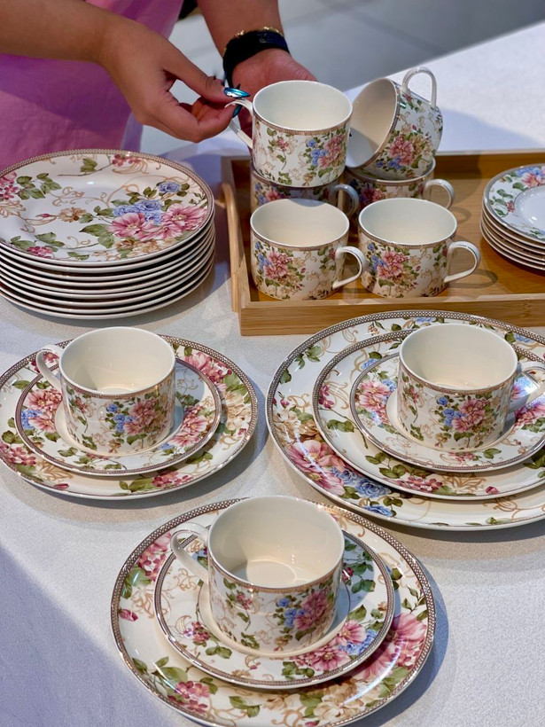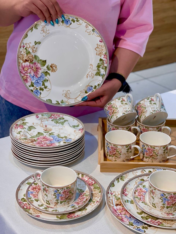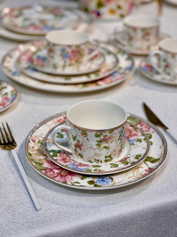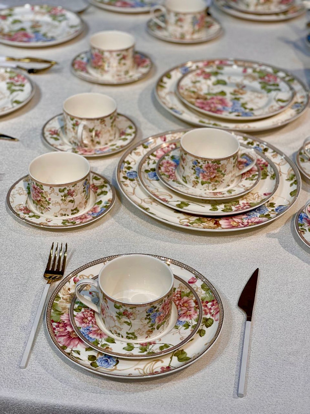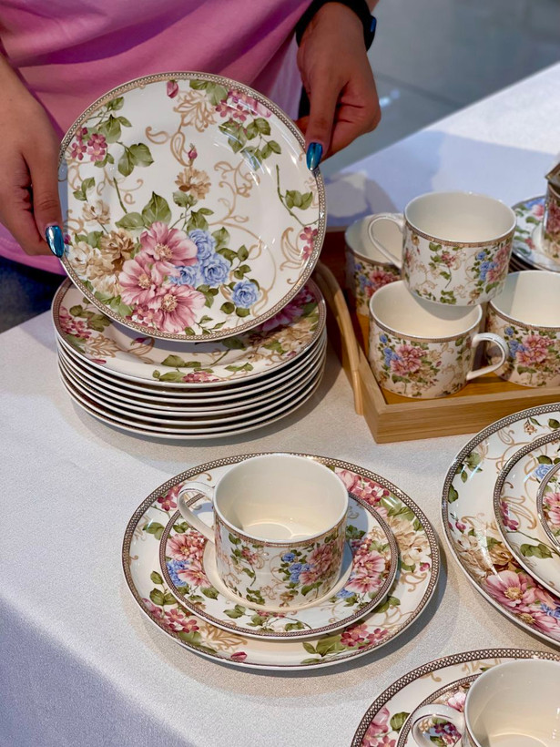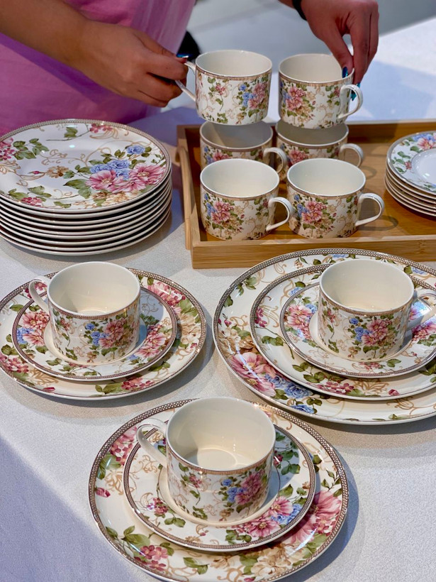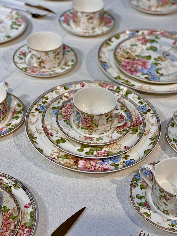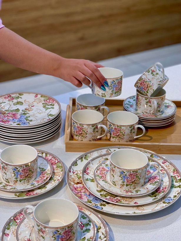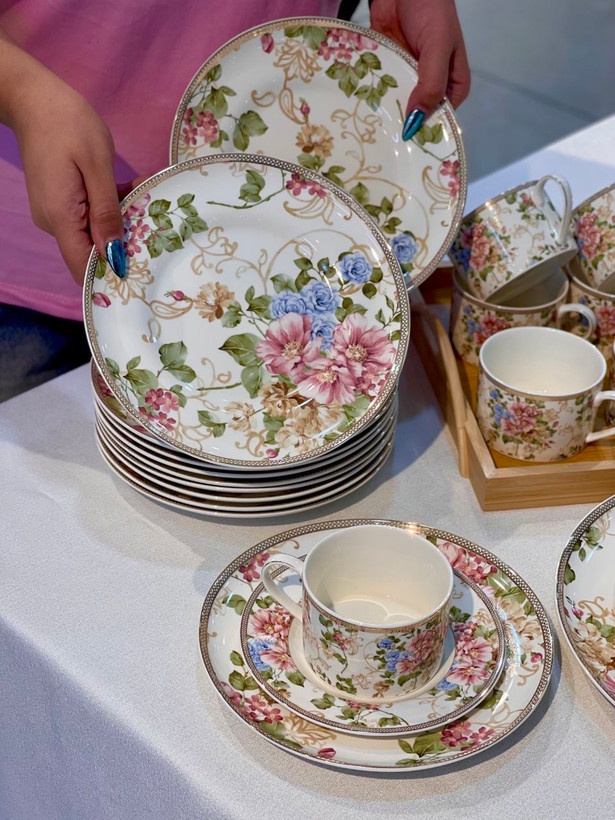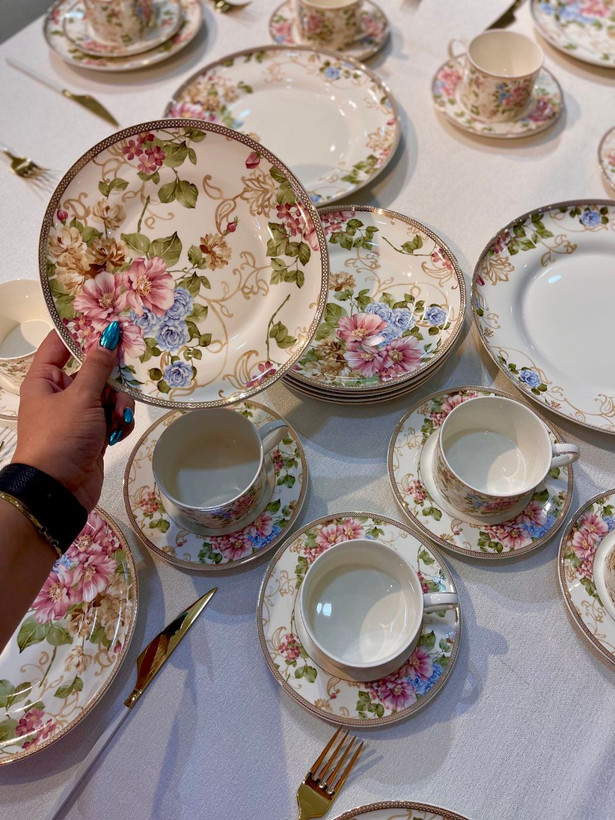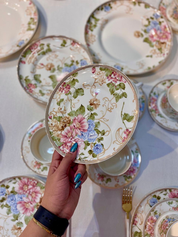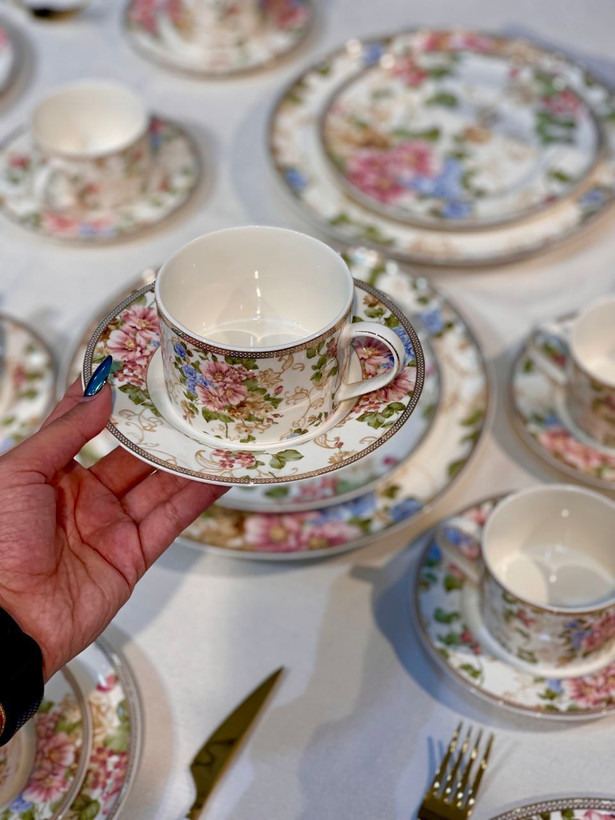 سرویس چینی بونچاینا با طرح گلدار شیک و نورگذری عالی؛ ایدهآل برای پذیرایی لوکس و استفاده روزمره.